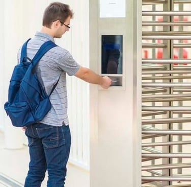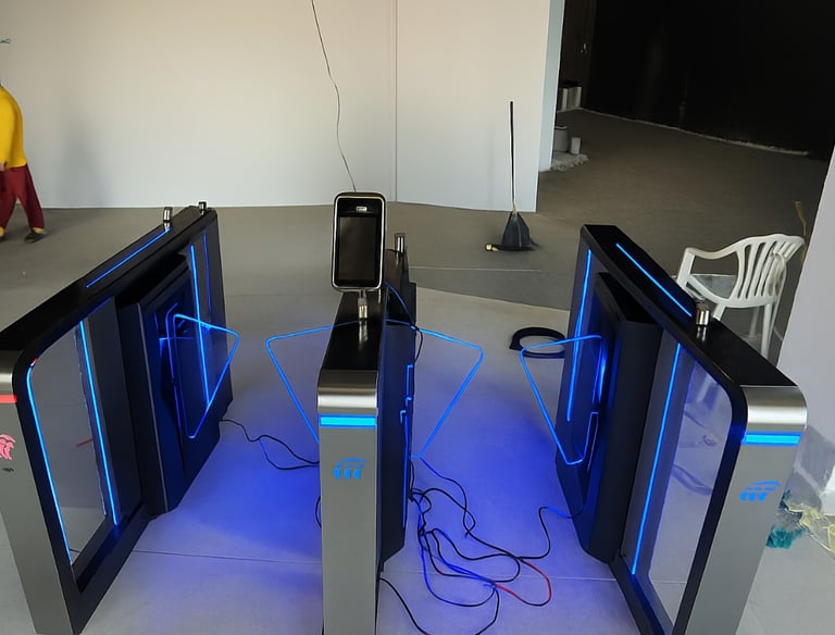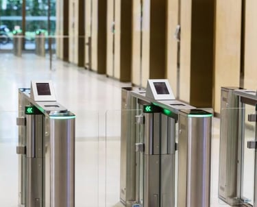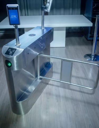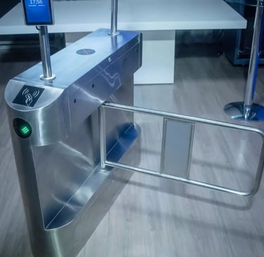 Catracas de acesso seguras e eficientes para controle de entrada e saída de pessoas.